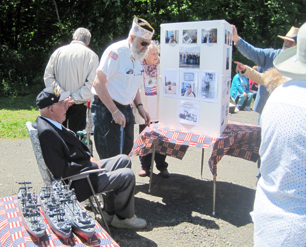 Some readers may remember the Youth Commission’s idea to have families send photos of their veteran relatives for a Memorial Day display and a “meeting of generations.” Responding to the appeal, the veteran Harry Christian offered to bring his beloved model warships too; on Memorial Day he talked in front of the people gathered at the Veterans Park.